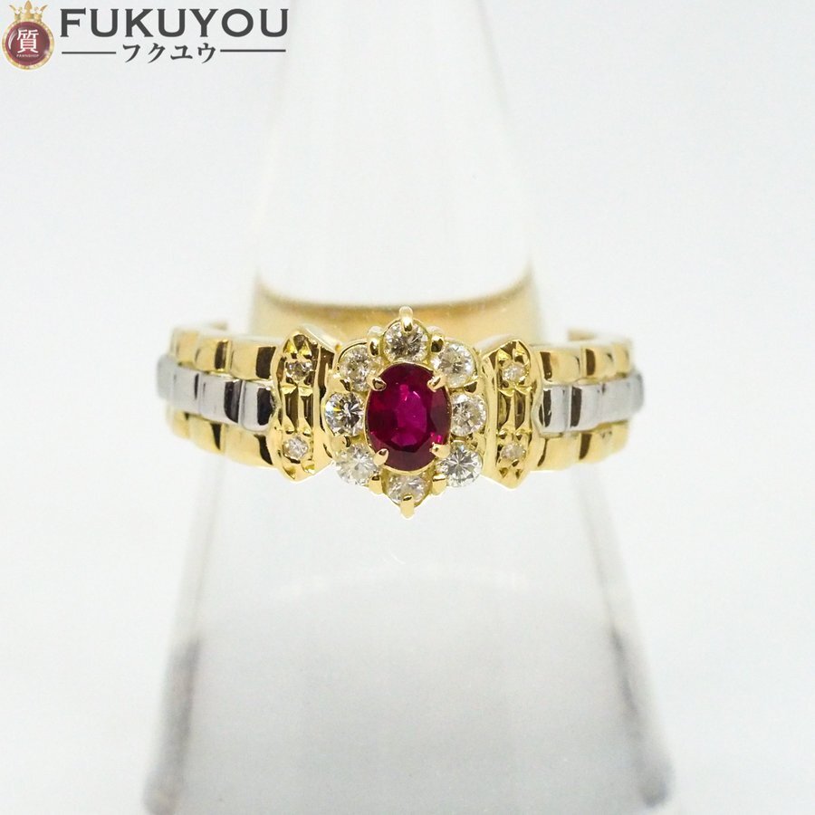 > K18 Pt900 ルビー オーバルカット メレダイヤモンド 0.33ct 0.24ct ゴールド/プラチナコンビリング 12号 4.3g 鑑別書あり 指輪