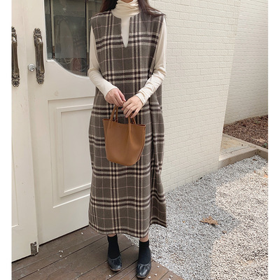 - 【新品!未使用!】ノースリーブ ワンピース Lサイズ ブラウン Vネック ゆったり 秋冬 ロング