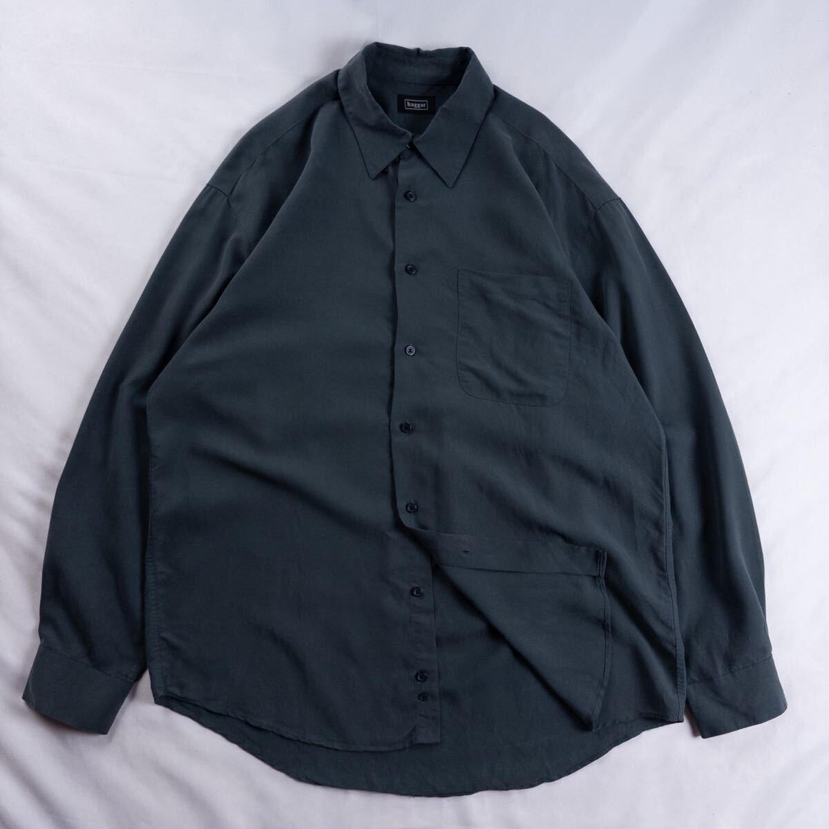 - US Vintage 00s haggar ポリノジックレーヨン ポリ くすみカラー とろみ ドレープ 単色 プレーン 深緑 ダークグリーン ドレス シャツ