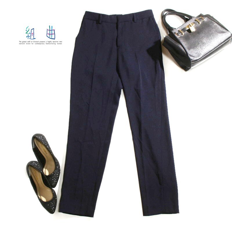 - 美品 組曲 クミキョク 株) オンワード樫山 美脚 綺麗め ストレッチ ジャージ― スーツ テーパードパンツ 1 ネイビー 紺 パンツ スラックス