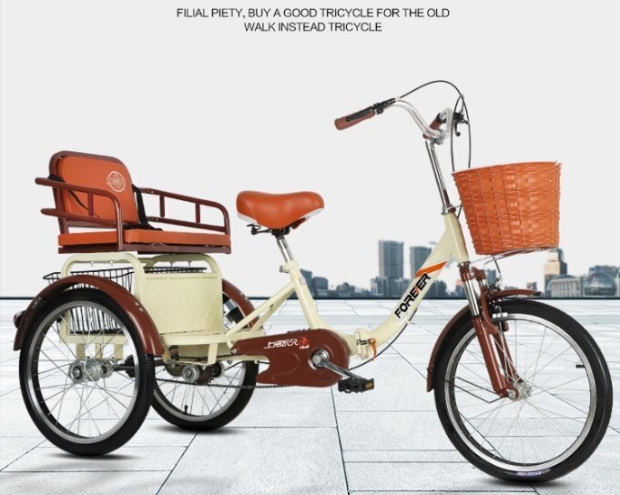 - 大人用 16インチ 折りたたみ式三輪車 高齢者用 ショッピングバスケットと後部座席付き 快適な 高齢者向け 三輪自転車