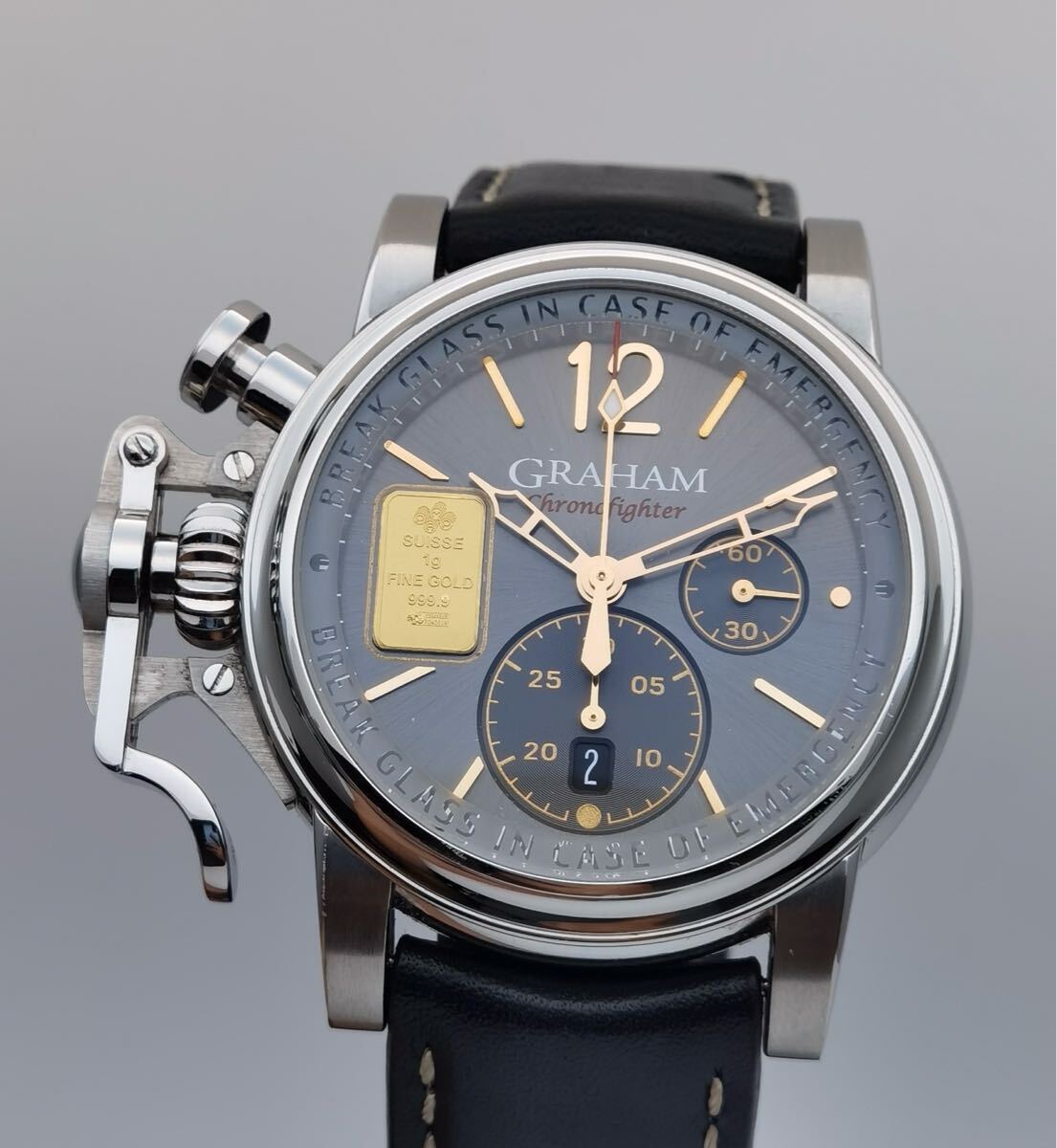 - 美品 保証書付き グラハム GRAHAM クロノファイター ヴィンテージ 2CVAS.A03A エマージェンシー ゴールド 限定25本 自動巻き メンズ 腕時計