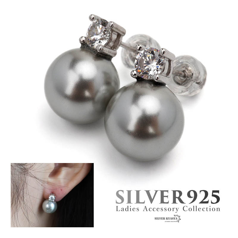 - グレーパールピアス ダブルポイント 真珠 ピアス 10mm 大きめ 両耳用 2点セット 大人可愛い シルバー925