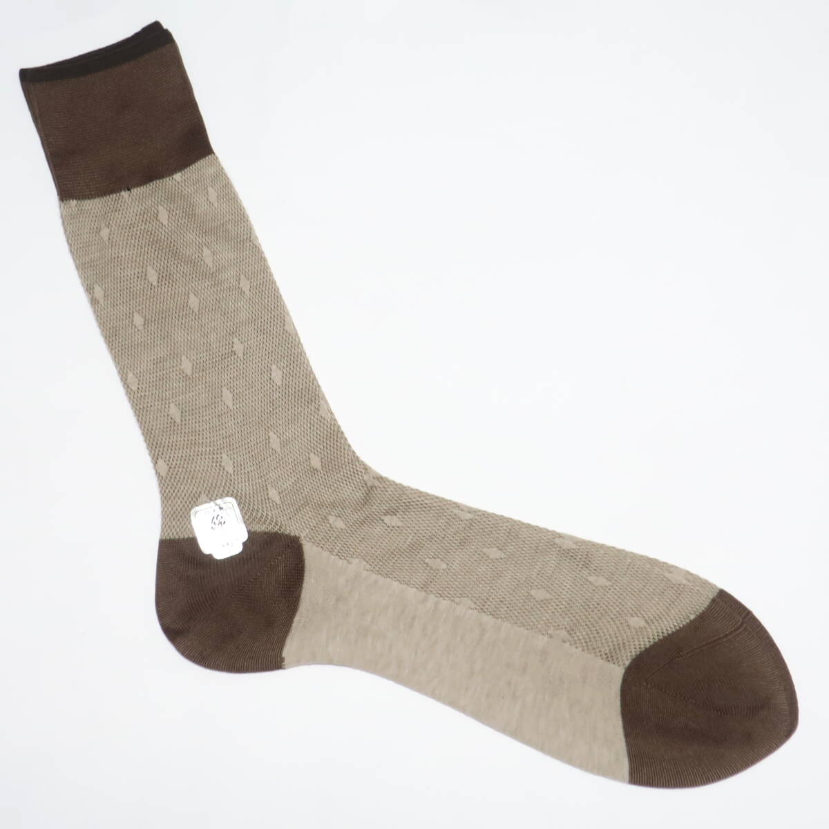 - 薄手 メッシュ ダイヤ柄入り 日本製 靴下 シースルー ブラウン ソックス メンズ 紳士 茶色 コットン 夏用 夏物 クール Japan