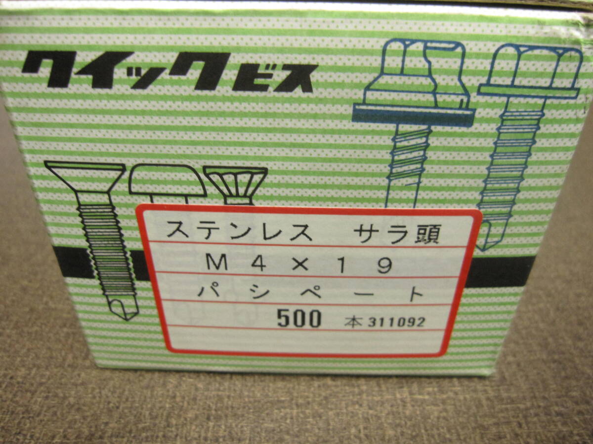 - クイックビス 材質 ステンレス パシペート サイズ 4×19 頭 サラ 数量 500本(1箱) 1箱で¥3000 送料無料