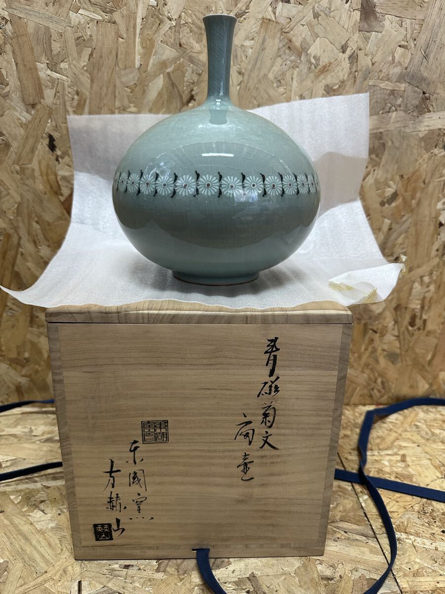 - 東国窯 方赫山 青磁菊文扇壷 壷 花器 陶磁器 コレクション