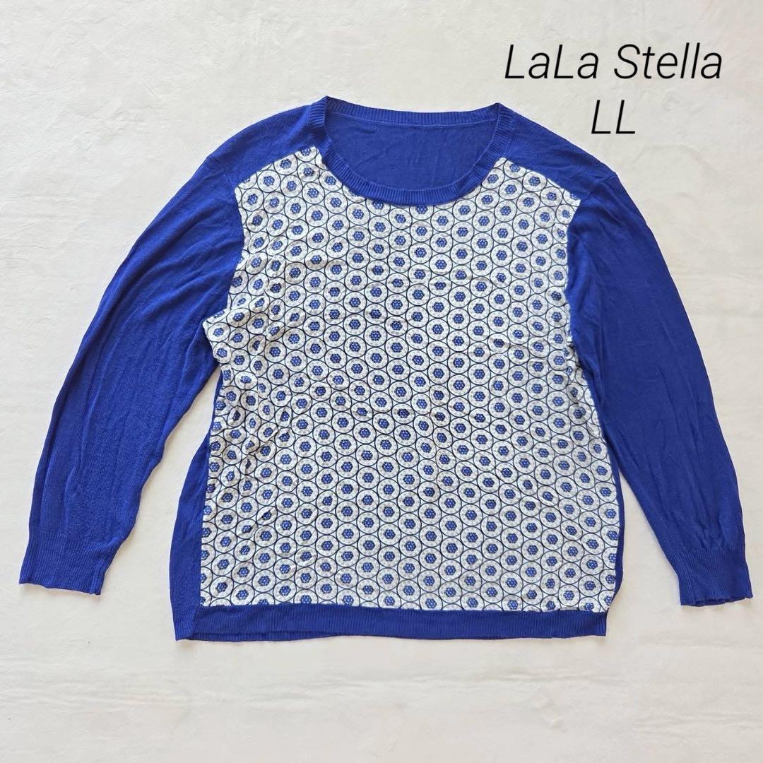 - ラサステラ LaLa Stella ニット LL 花柄 ブルー 長袖 幾何学模様