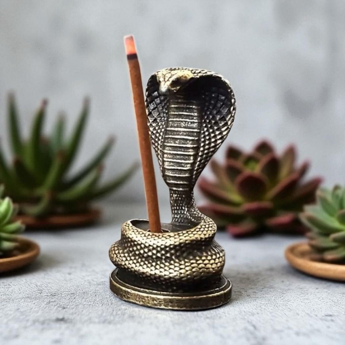 - 【お香立て】金属製 コブラ 蛇 置物 彫刻 アジアン 金運 インテリア 開運 個性的 ユニーク 精密彫刻 スネーク インセンス