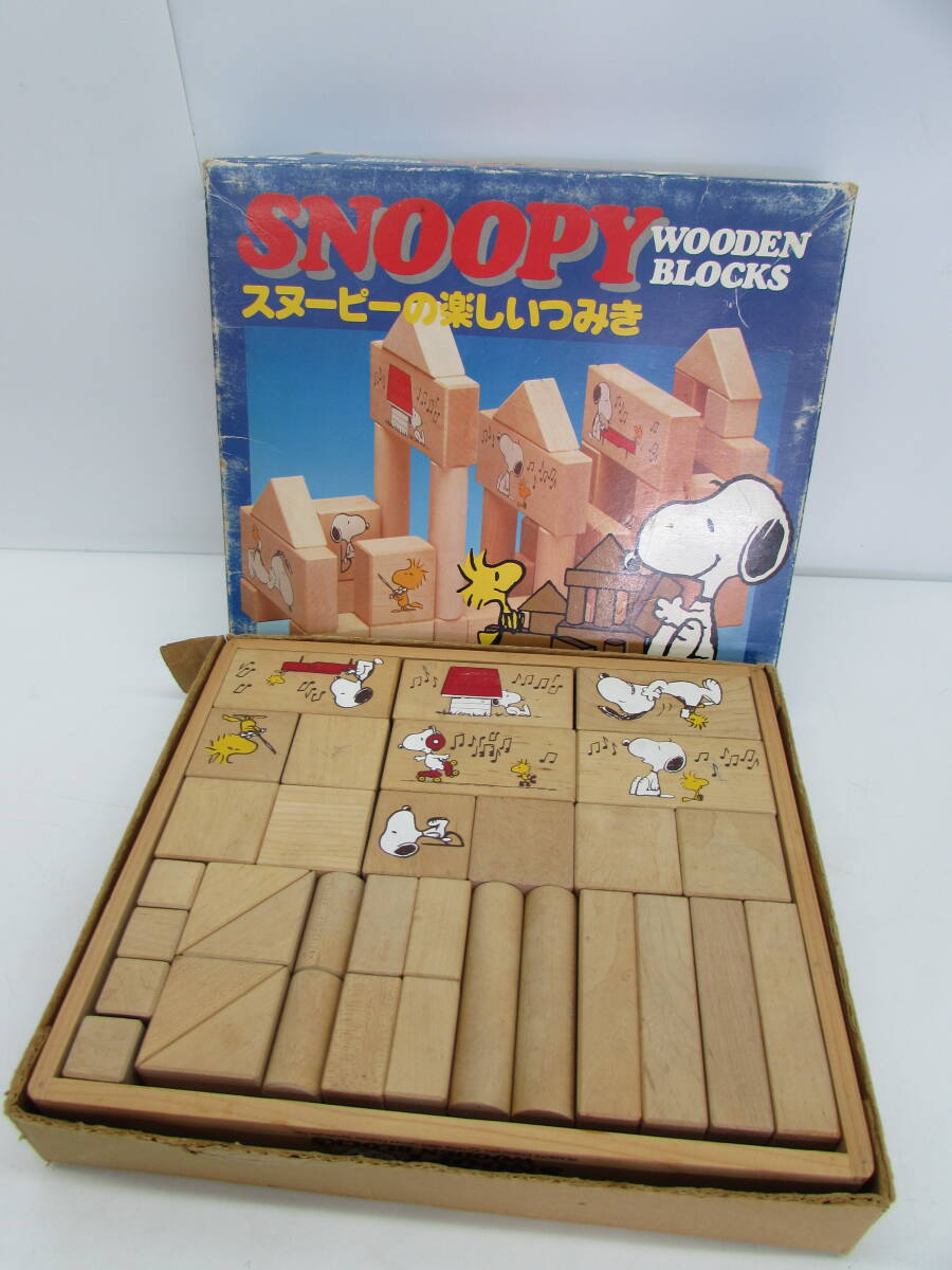 - 昭和レトロ SNOOPY スヌーピーの楽しいつみき SB-37 木製 積み木 ブロック 知育玩具