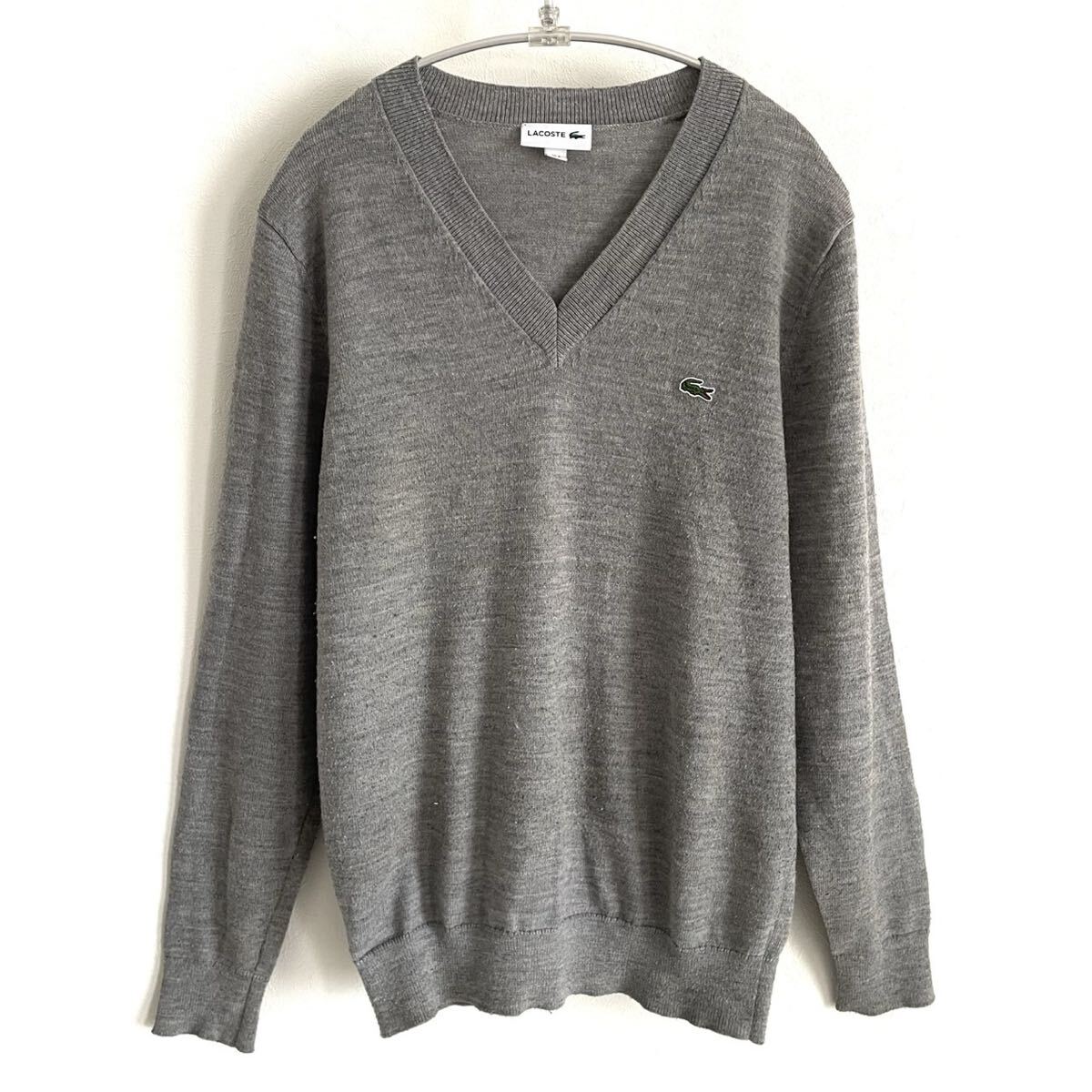- 【LACOSTE/ラコステ】ワンポイント刺繍 ラムウールニットセーター/Vネック/グレー/衝撃プライス!US/S表記/衝撃プライス!1点限定販売★B49