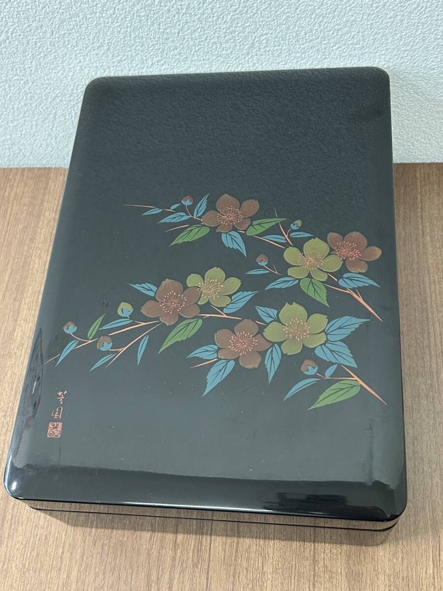 - 【C】漆器 重箱 小物入れ 文箱 花 アンティーク 長期保管品