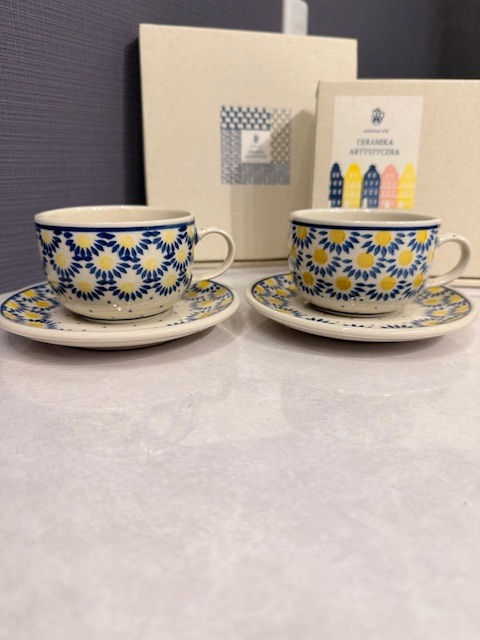 - ●H7-9-44 ツェラミカ ポーリッシュポタリー デイジー カップ&ソーサー ポーランド食器 ペア 箱あり