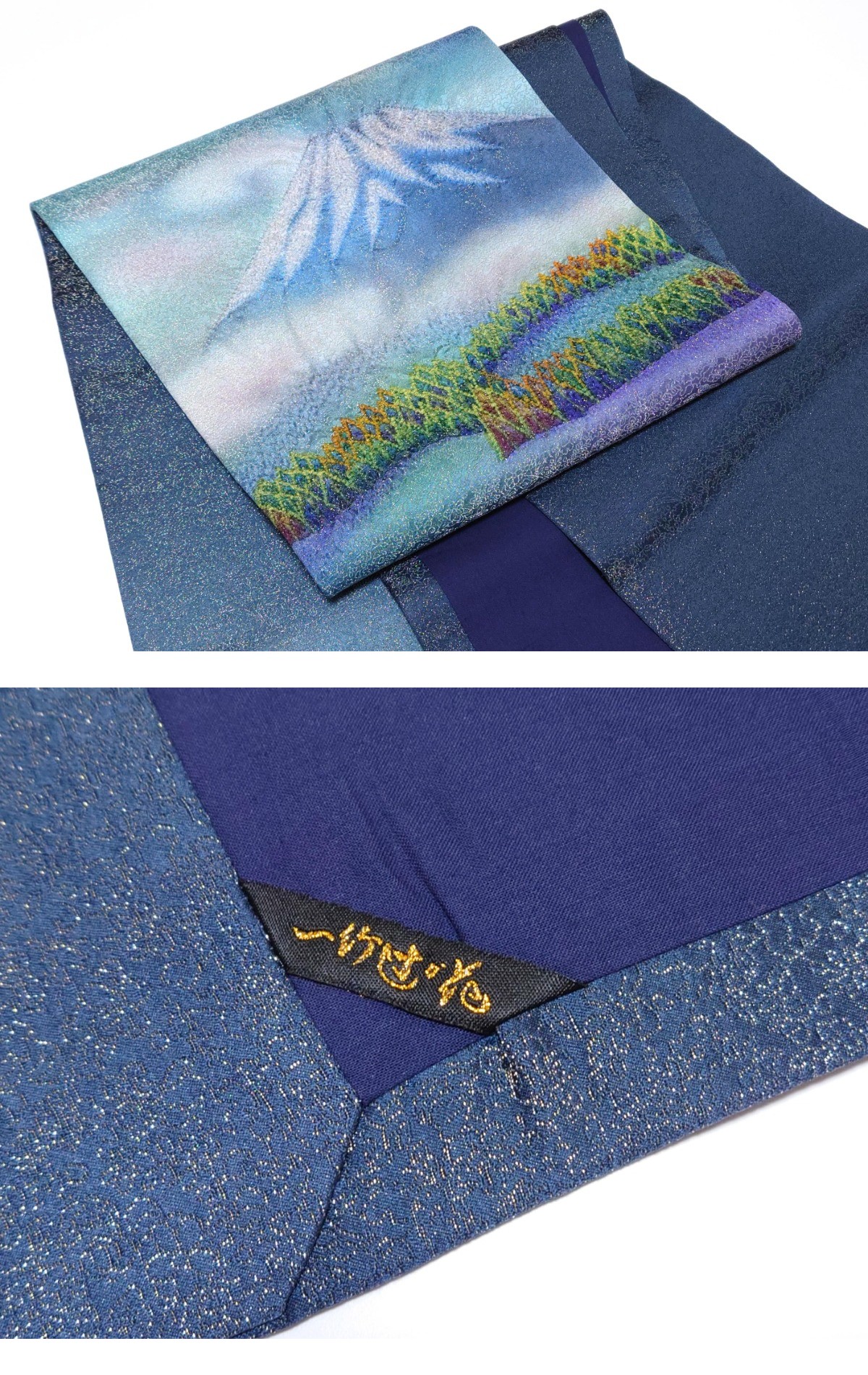 > ◆特選◆ 二代目 久保田一竹 一竹辻が花 富士風景図 額縁仕立て帯 キモノマルシェ【A-115】