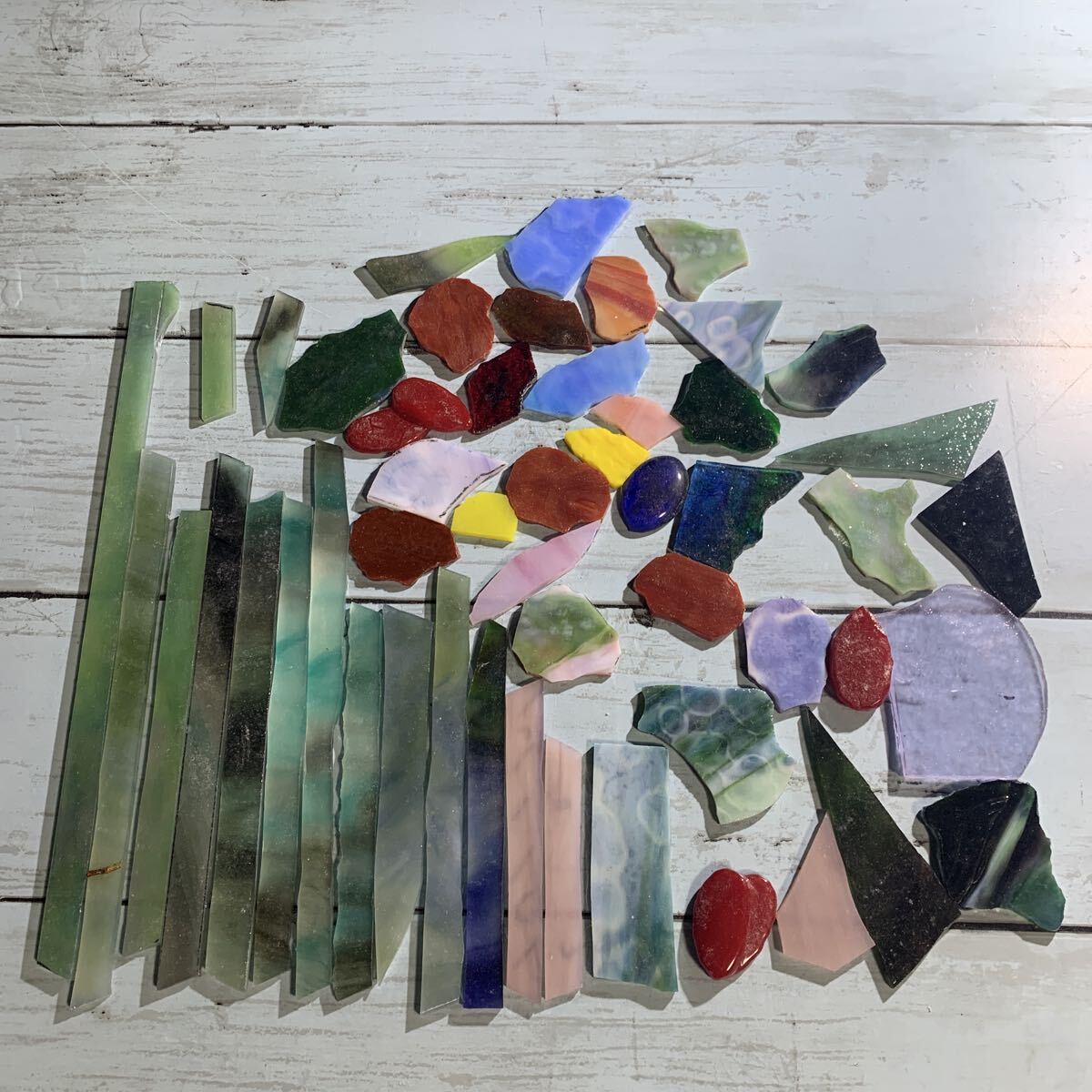 > ステンドグラス ステンドガラス 資材 ランプシェード ガラス工芸 ハンドクラフト材料 端材 硝子 切っ端 板ガラス 50個 まとめて (A-3111)