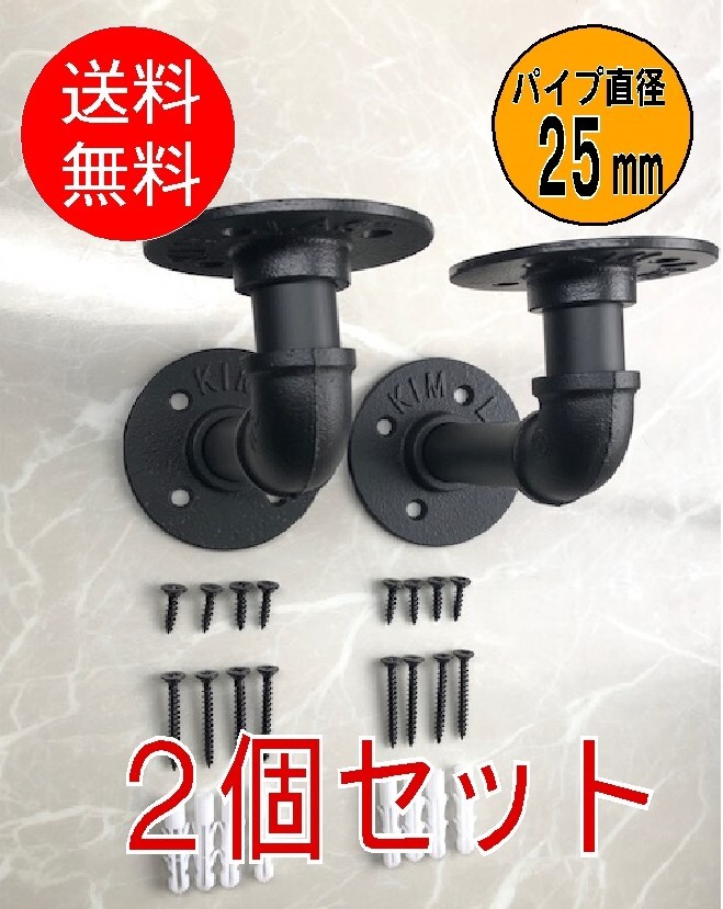 - 【2個セット】■棚受け 金具 ガス管■直径25mm 鉄パイプ DIY レトロ 水道管 ブラケット 黒 アイアン インダストリアルデザイン