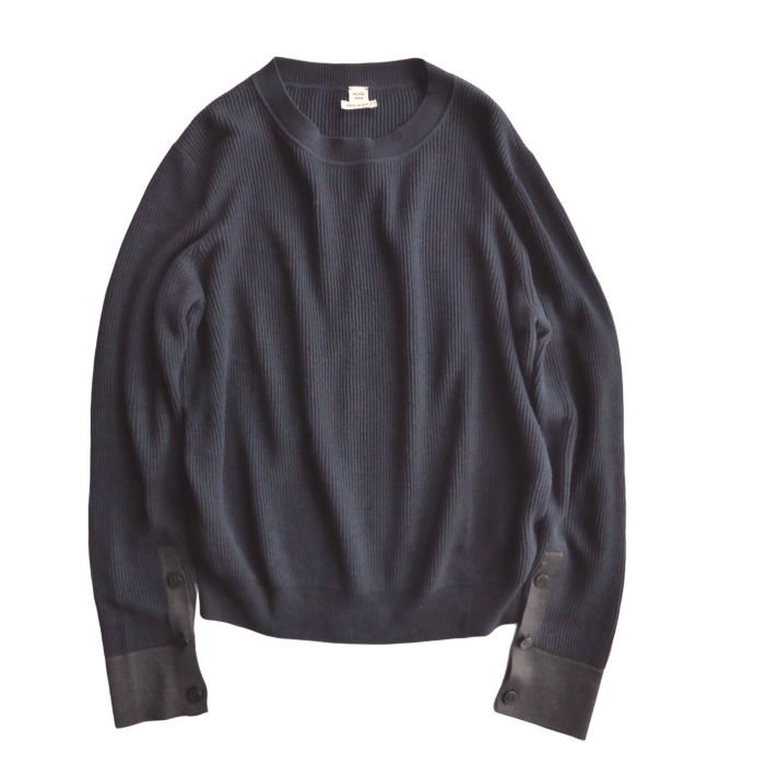 > エルメス (HERMES) ウール コットン ニット セーター 長袖 切り替え カフスデザイン 42 グレー ウェア メンズ ソルド品(中古)