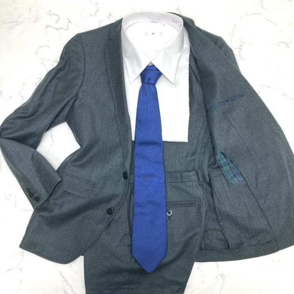 - 極美品 super100'S スーツセレクト ヘリンボーンセットアップ 本切羽 背抜き ウール 秋冬~通年 メンズM相当 グリーン系 SUIT SELECT B1358