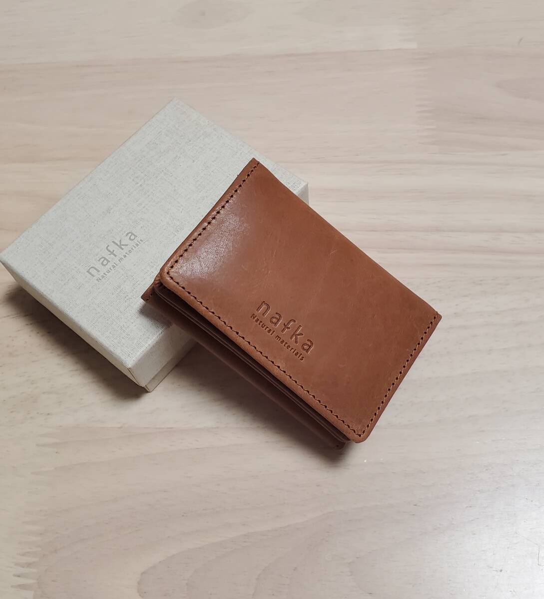 - 新品 未使用 美品 nafka 折り財布 ミニ財布 レディース ショートウォレット 財布 短財布 三つ折り財布 本革 牛革 革 日本製 キャメル