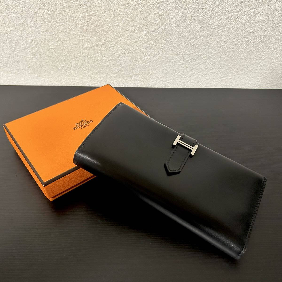 - 美品 HERMES エルメス ベアンスフレ ボックスカーフ 長財布 メンズ