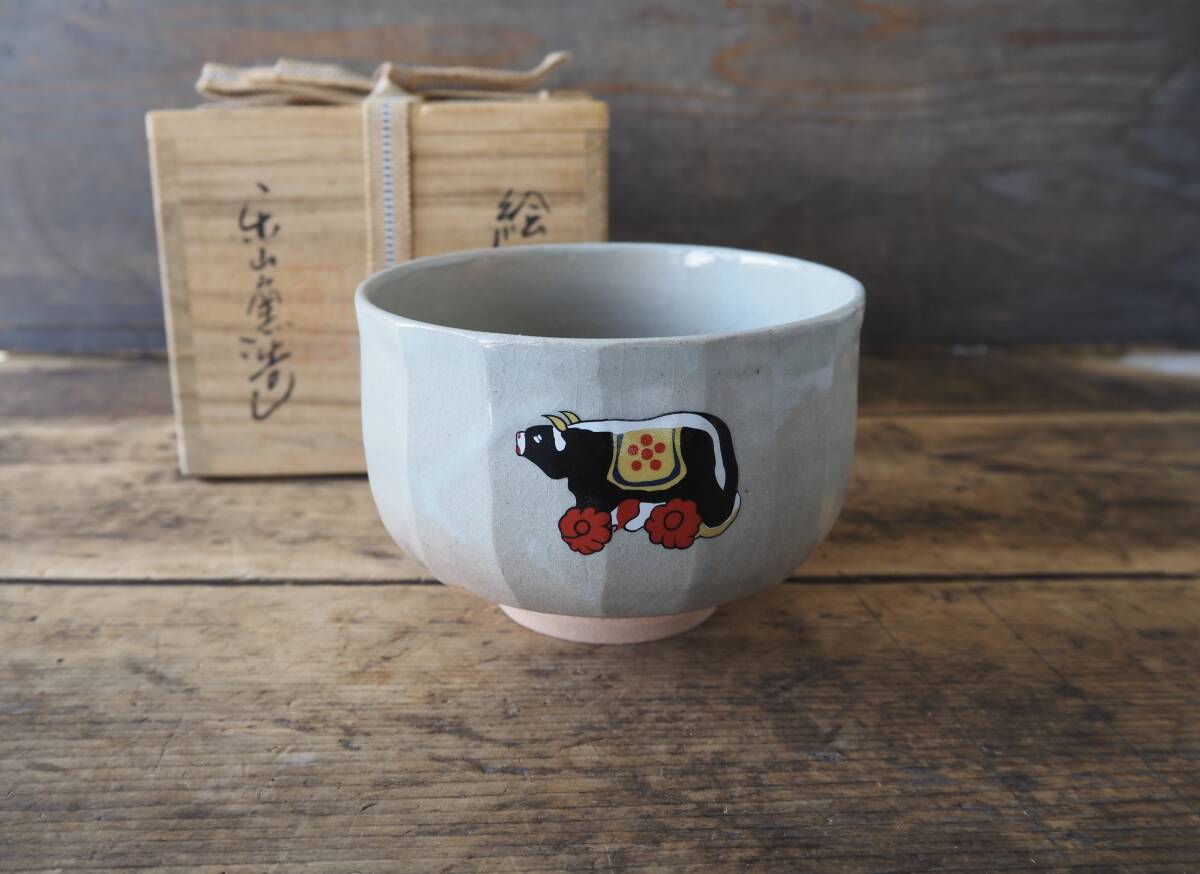> 【OAN】 楽山窯 抹茶碗 在銘 共箱付 骨董 古美術 古道具 民藝 古民藝 茶道具 懐石 古玩 在銘 作家物 清水比呂志 京焼 無傷 E25933