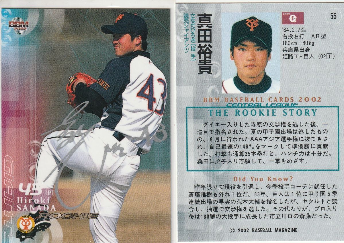 - ●2002BBM/1st 【真田 裕貴】ルーキー:シルバーサインパラレル No.55:巨人 R