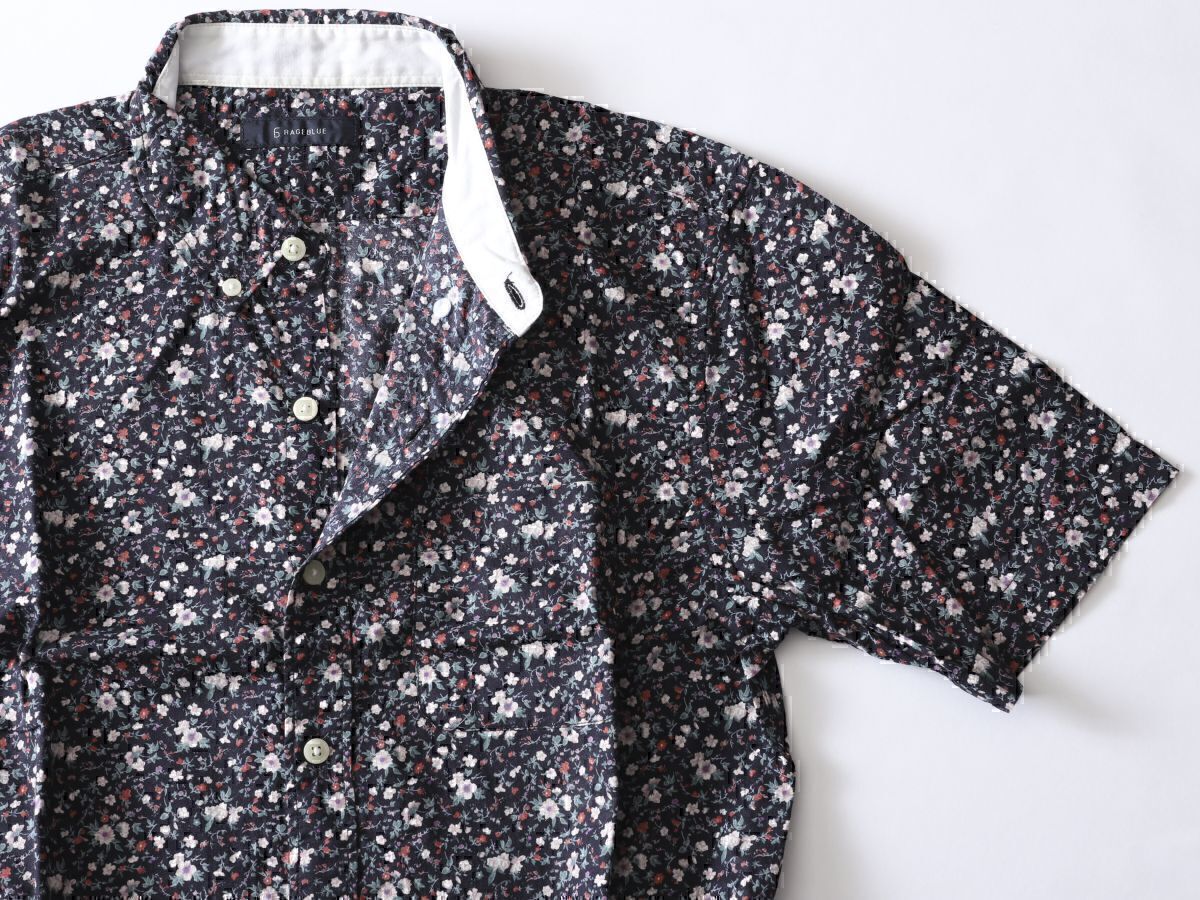 > ★中古★RAGEBLUE レイジブルー★ボタンダウン花柄半袖シャツ★L【RB020073SB】ネイビー紺【本物保証】綺麗目ファッション★男女兼用★人気