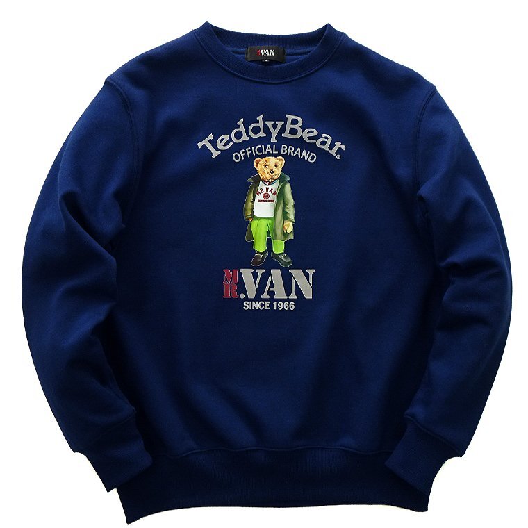 - 新品 ミスターヴァン テディベア 裏起毛 プリント スウェット L 紺 【TDV1434130_79_L】 MR.VAN Teddy Bear 2023秋冬 コラボ 限定 トレーナ