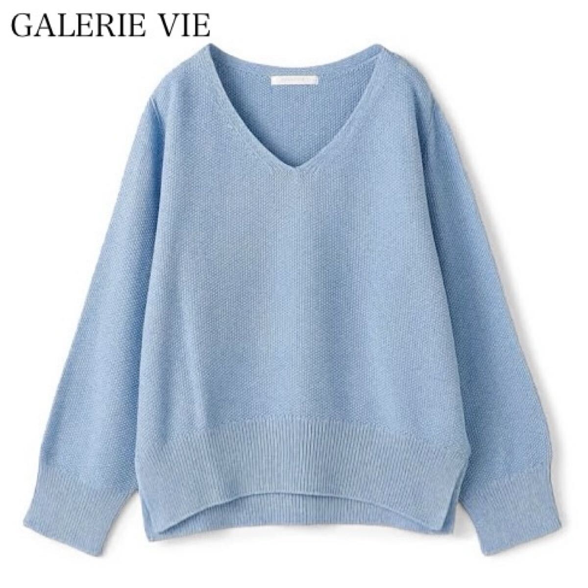 - 【25SS】GALERIE VIE ギャラリーヴィー コットンカノコ Vネックプルオーバー 鹿の子 ニット セーター トップス 長袖 スリット ライトブルー
