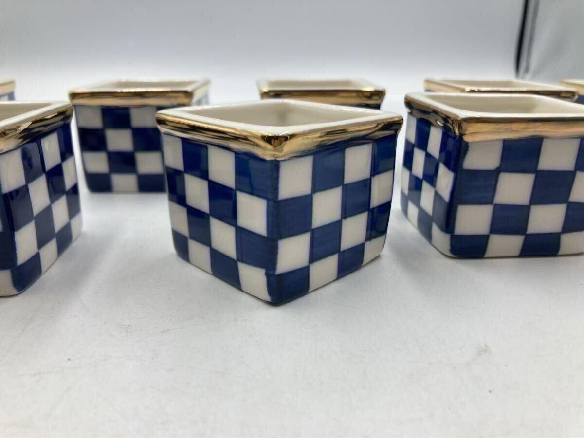 - 美品 乾山写 縁金 京焼 10客 日本料理 懐石料理 八寸 前菜 小鉢 市松 染付 刺身皿