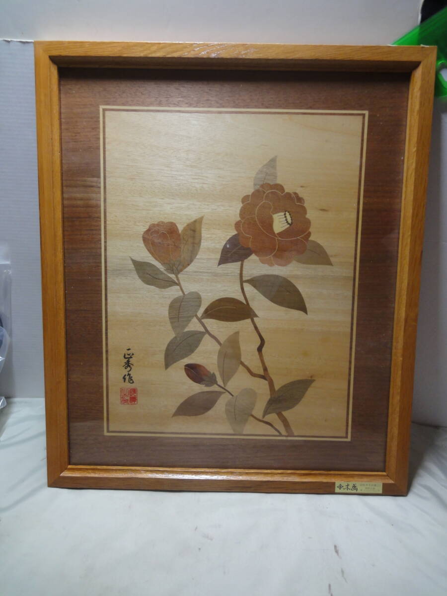 - 【箱根木象嵌細工 木象嵌細工もくぞうがんさいく(木画) 額サイズ約 38x32.5cm]