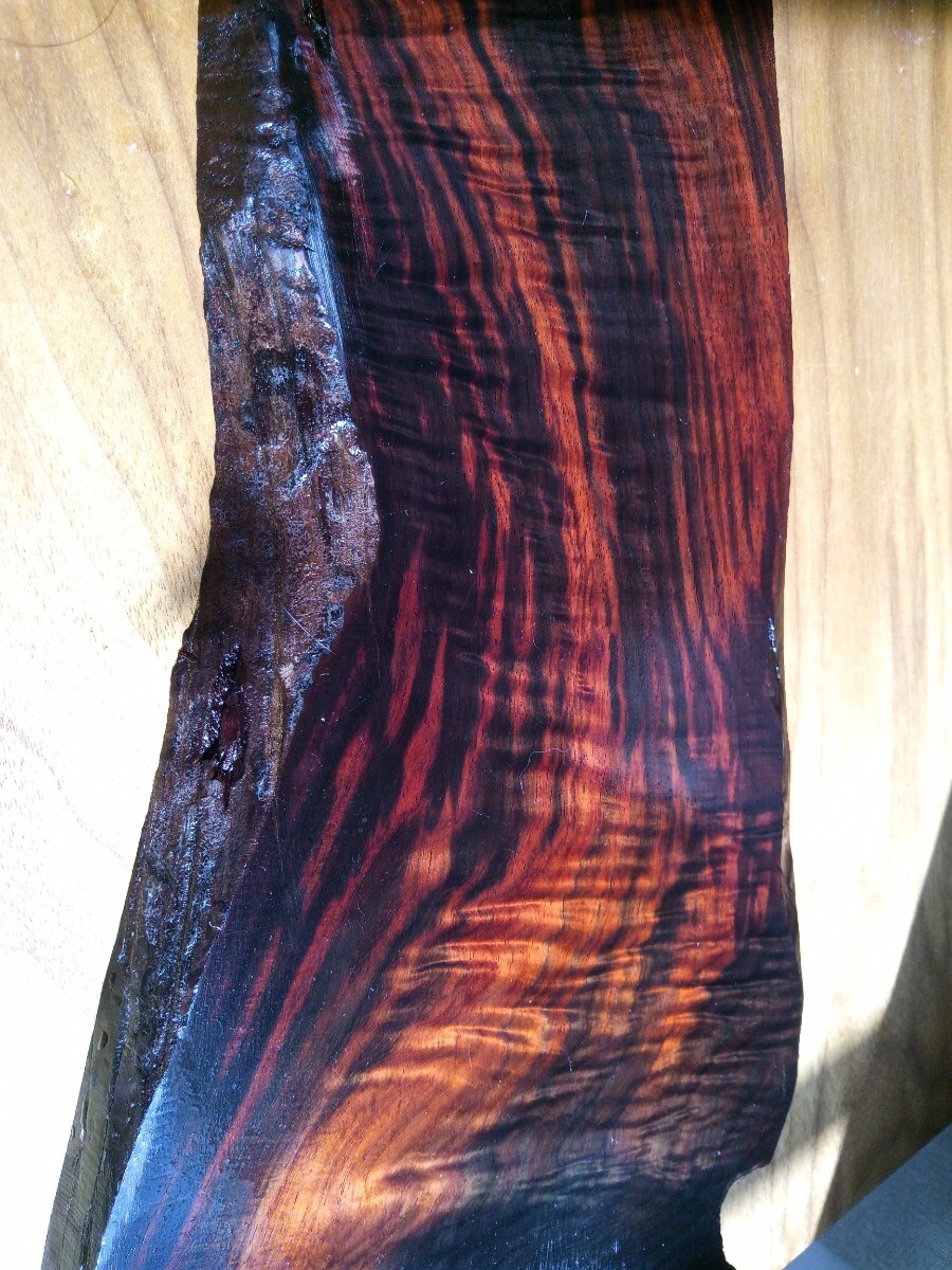 - 極美 サイアミーズローズウッド マイクロカーリー 糸縮杢 ライブエッジ 板材 本紫檀 銘木