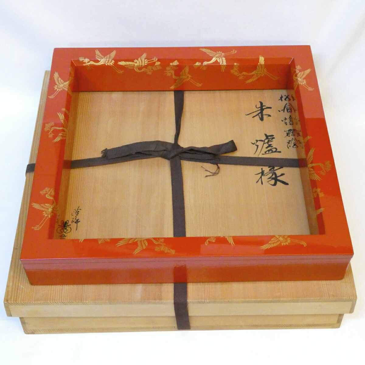 - 【九月の特売品】加賀塗師 岡本陽斎作 松喰鶴蒔絵 朱塗炉縁 茶道具【中古】
