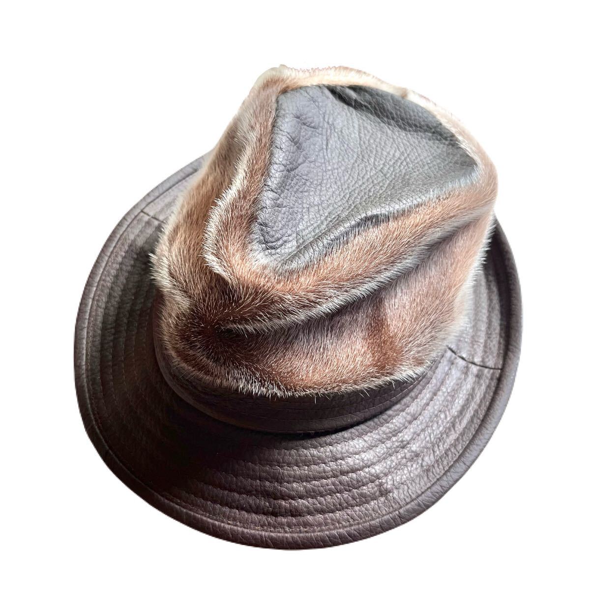 - アトリエ どら猫 旭川 レザーキャップ チロルハット ファー ハット 中折れハット 帽子 アザラシ エゾ鹿革 本革 日本製 L