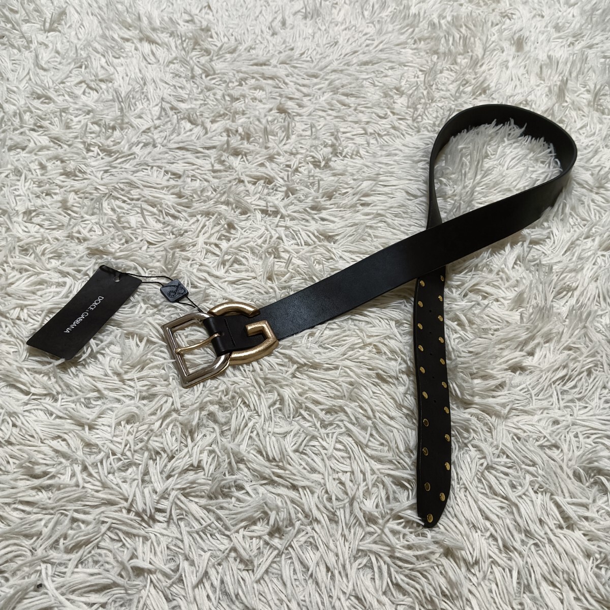 - 美品★ドルチェ&ガッバーナ レザー ベルト DGロゴバックル スタッズ ブラック 黒 本革 ドルガバ 革小物 タグ付き 未使用に近い 古着 USED