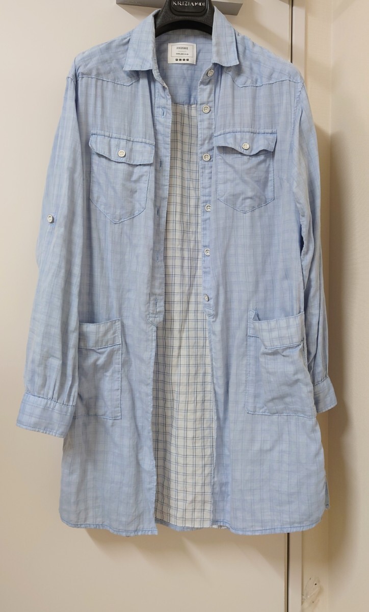 - プラステ◆シャツワンピース 長袖 ライトブルーチェック チュニック W(合わせ)仕様