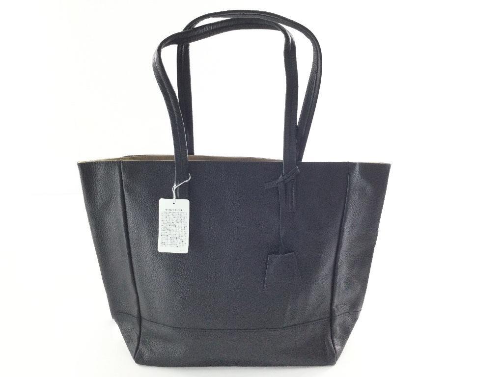 - 本革 トートバッグ 横型 レザー キーリングホルダー付 ブラック