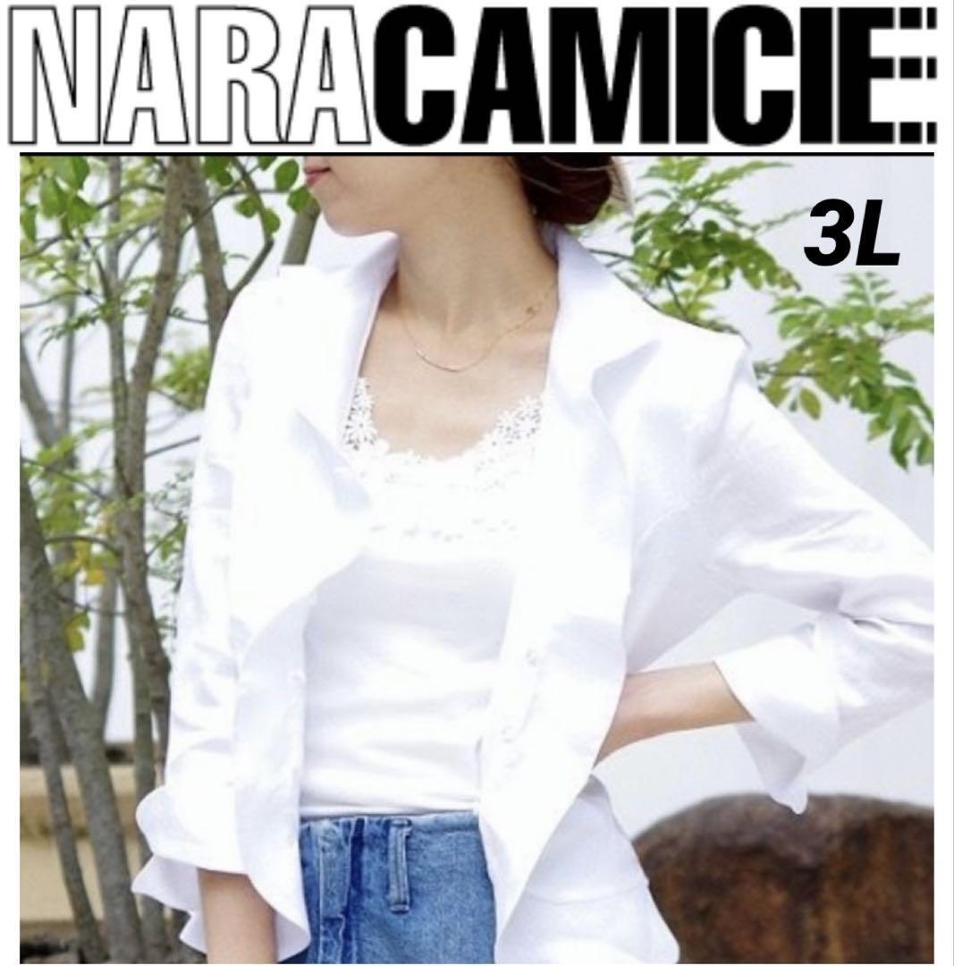 > NARACAMICIE ナラカミーチェ フリル コットンシャツ 七分袖ジャケット ネイビー 3L 大きいサイズ
