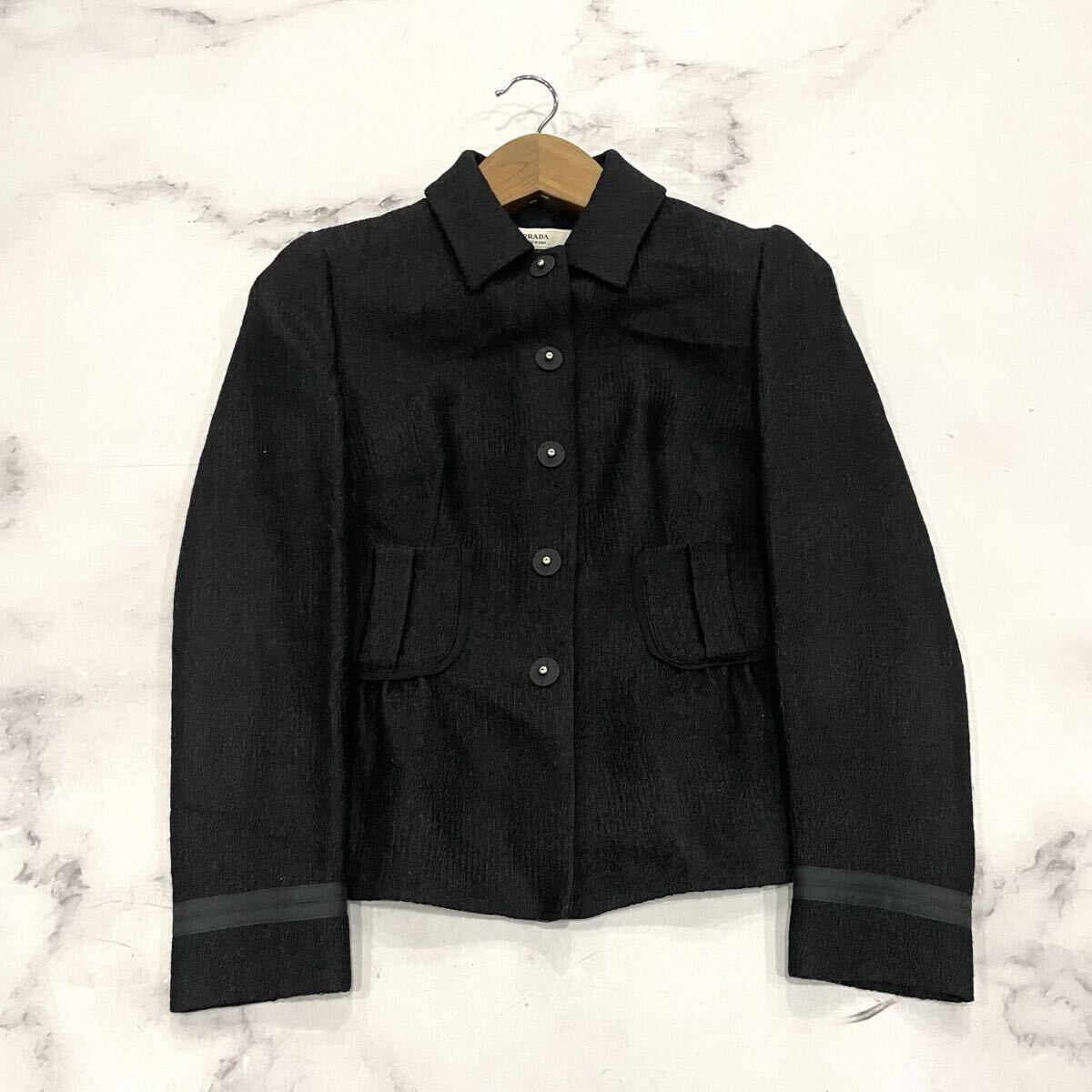 > AD ○ ラグジュアリーウェア 'イタリア製' PRADA プラダ ウール混 ジャケット size:40 レディース アウター 高級婦人服 ブラック