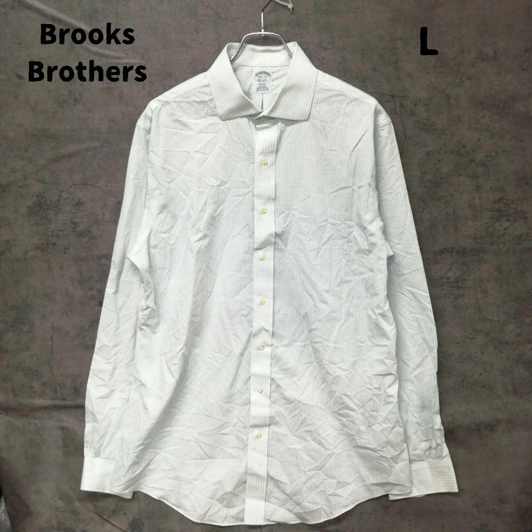 - ブルックスブラザーズ 長袖シャツ 白 L チェック レジントフィット【5763