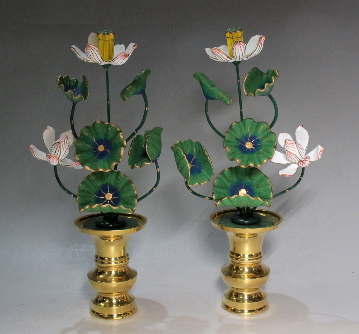 時代市場■未使用在庫品■木製極彩色小常花6寸 1対 花瓶付■仏具・仏像・仏教美術