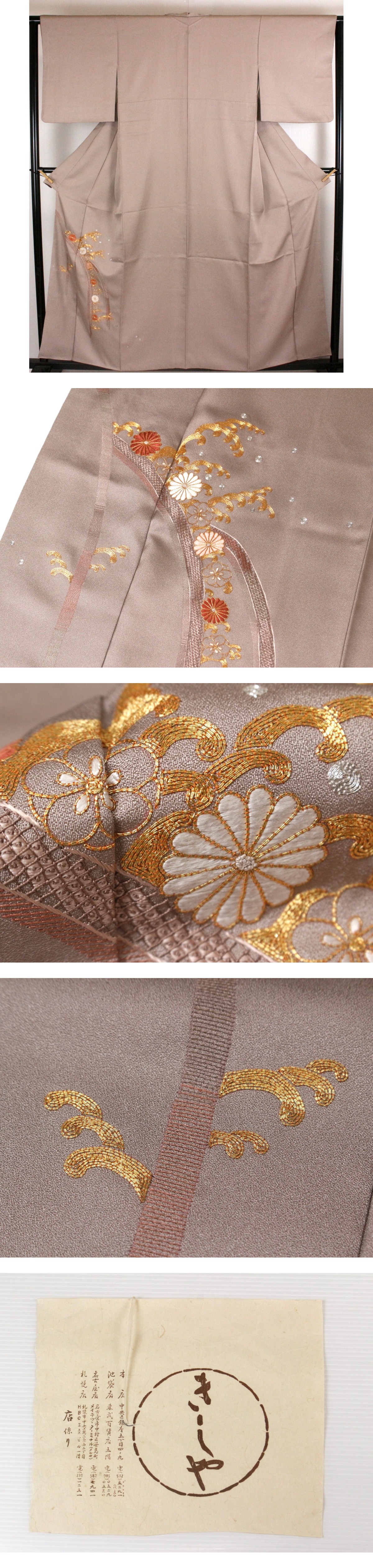 > ■美品■一つ紋 正絹訪問着 金駒刺繍《きしやお取扱》 裄:63cm e-2532