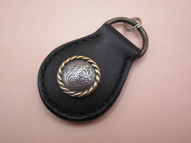 - サドルレザー「ブラック ウエスタン」キーホルダー キーリング チャーム バイカー ロッカー ハーレー シンプル ハンドメイド