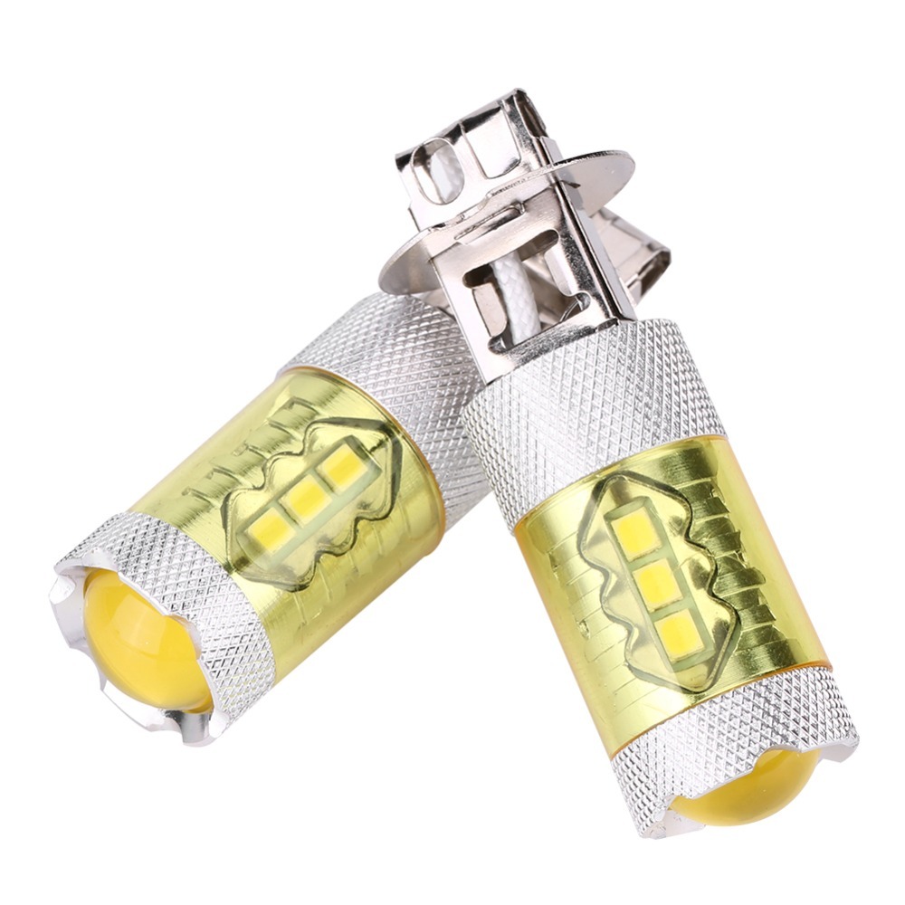 - [2個セット] 爆光 H3 LED フォグライト イエロー 12V/24V共用 80W 16連SMDチップ フォグランプ 黄色 4300K 【送料230円】