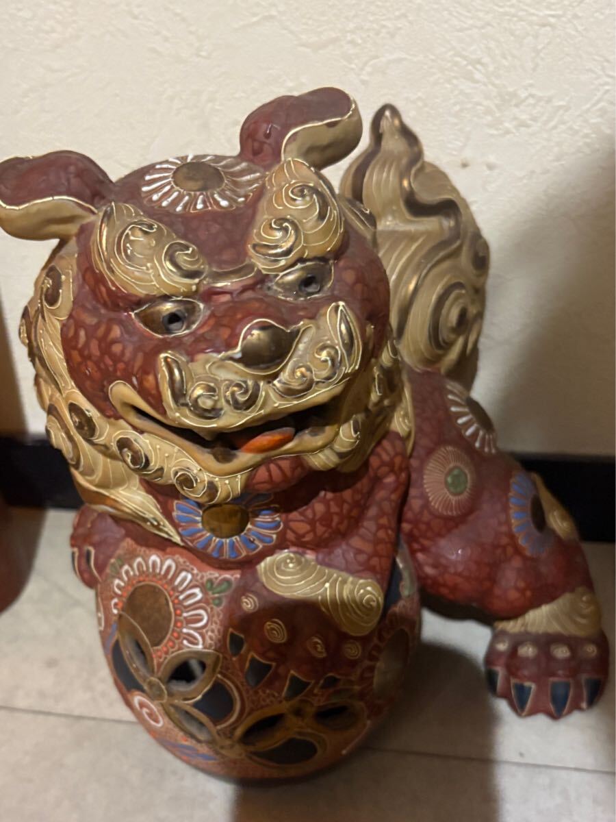 - 九谷焼 玉乗り獅子 縁起物 魔除け 狛犬 シーサー 開運 陶器 置物20センチ 置物 玉獅子 狛犬 獅子 金彩 玉乗り獅子 九谷焼 縁起物 シーサー
