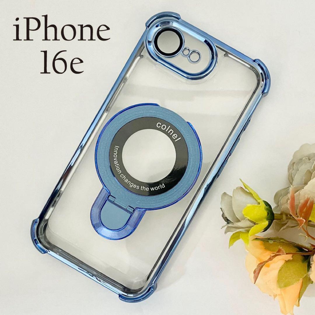 > iPhone16eケース リングホルダー付 MagSafe対応:ブルー ☆おまけガラスフィルム付