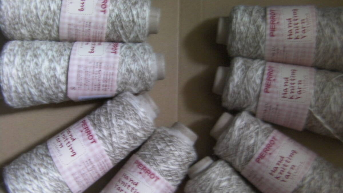 - 春夏糸*サマー・スラブ*綿麻*色番851淡いベージュと生成?*8玉(コーン巻き)*G