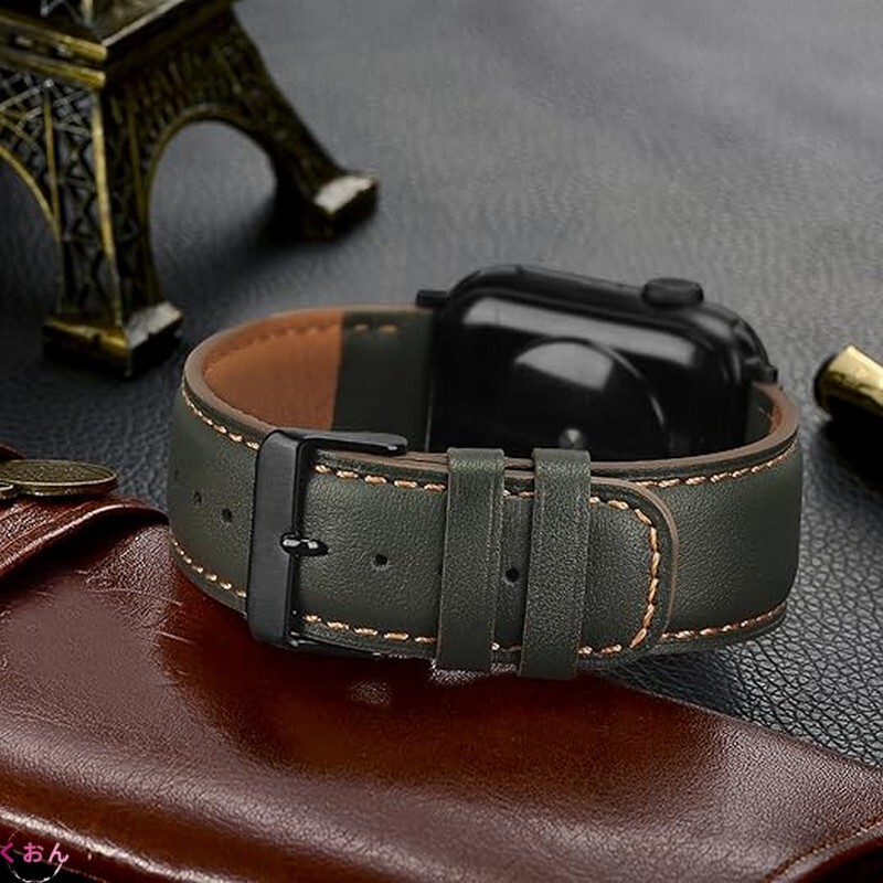 - ディープグリーン 高級 本革 スポーツ ビジネス アウトドア アップル ウォッチ Apple Watch SE3 (38mm/40mm/41mm/42mm) バンド ベルト