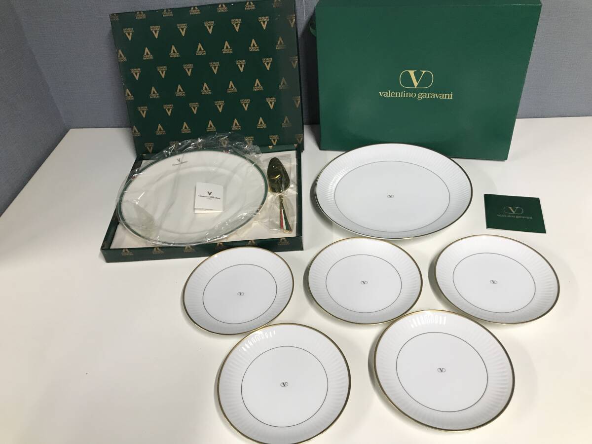 > ★未使用品★Giovanni Valentino ITALY★プレートセット★デザート ケーキサーバー 取分け皿 大皿 洋食器 金縁 ゴールド×ホワイト カフェ