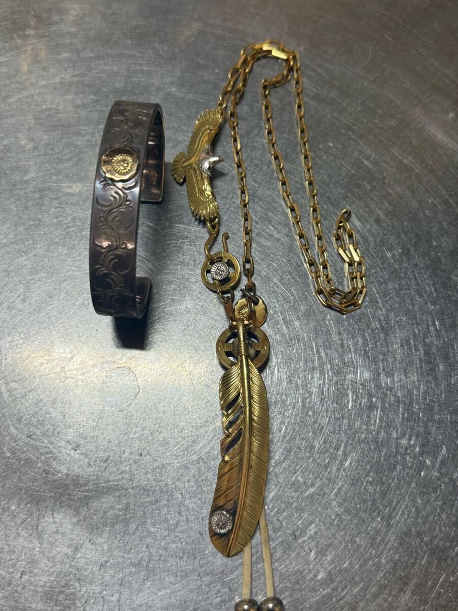 - 特注 wingrock ウィングロック ウイングロック 全金 プラチナ フェザー イーグル ホイール メタル フック 唐草バングル セット