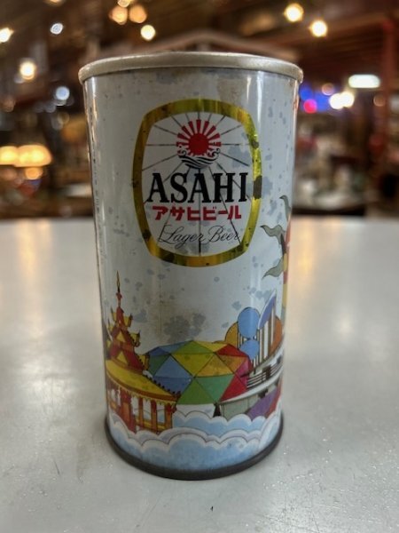 1970年に大阪で開催された日本万国博覧会を記念して発売されたアサヒビールのスチール空き缶です。